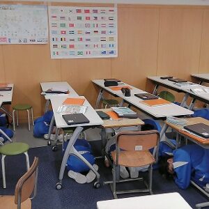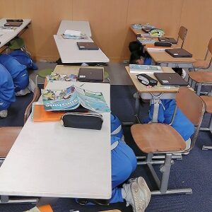 弾道ミサイルに係る聴取訓練を実施しました。今回は教室や特別教室での訓練を実施しました。教室では、窓から離れ机の下で身を守る姿勢をとりました。5年生はJアラートが聞こえたらすぐに避難行動を行い、避難解除の放送が聞こえるまで静かに身を守る姿勢をとっていました。