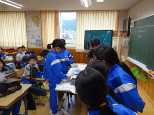 5年生の子供たちは、学級の生活をもっと楽しくしようと、ダンス、学級新聞、遊び道具の発明等、様々な係活動に取り組んでいます。