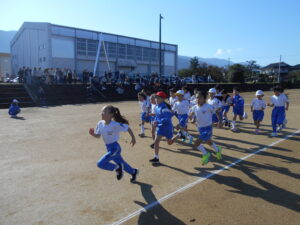 子どもたちは保護者や地域の方々に見守られながら真剣に走り、たくさんの声援を受けながらゴールに飛び込むことができました。自己ベストを出せた子がとても多かったです。
