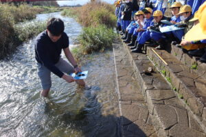 今日、5年生は理科の学習の一環として、小矢部川に校外学習に出かけました。