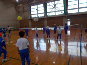 体育の学習では、ソフトバレーを行っています。みんなでルールを話し合い試合ができました。