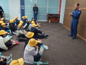 私たちの暮らしや命を守るための消防署の方の努力や工夫について、消防署の中や消防自動車、救急車などを見せてもらいながら、教えていただきました。