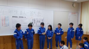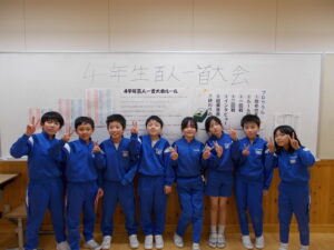 今日は、4年生が年度初めからがんばっている「挑戦する力」「切りかえる力」にぴったりの百人一首大会を行いました。始業式の日から、実行委員が中心となって進めてきました。