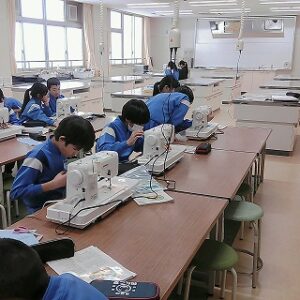 5年生はミシン縫いの学習をしています。ミシンで直線縫いをしたり、返し縫をしたりしました。初めてミシンに触れる子供が多く、糸のかけ方に四苦八苦しながらがんばっています。