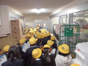 校外学習(3年生) 2025年11月5日 3年生 3年生は社会科の学習でアスモに行きました。普段、買い物をしているアスモの裏側を見たり、店長さんからのお話を聞いたりしました。授業で学んだことや新しく知ったことがあり、ワークシートにたくさんメモをしていました。 ぜびお子さんからどんなものを見たのか、知ったのか聞いてください。