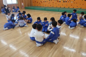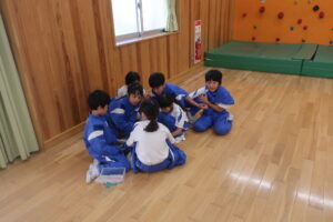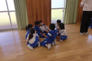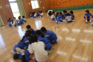遊園地を表現しよう(体育科:2年) 2025年11月3日 2年生 体育科では、今、表現遊びに取り組んでいます。子供たちが体を動かしながら遊園地の乗り物を表現しようと取り組んでいるのです。話し合いながら、少しずつ形になってきました。