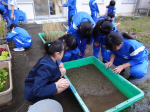 バケツ稲の学習を通して、子供たちは食糧生産の大変さ、食糧生産に携わる人の思いについて気づき、考えました。その経験を基に、これまで以上に真剣に栽培に取り組んでいます。