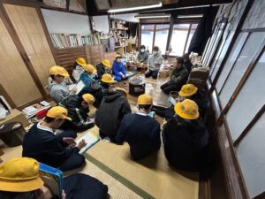 井波の魅力って何だろう(6年生) 2025年12月5日 6年生 6年生は総合的な学習の時間に、井波の魅力について探求しています。 先日は、「よしみ工房」さんを含めた3つの工房・アトリエに伺いました。それぞれの工房で作られている彫刻の種類や、県外や海外と比べた井波彫刻の魅力等、彫刻士の方々のお話を興味津々に聞いていました。