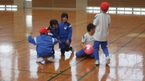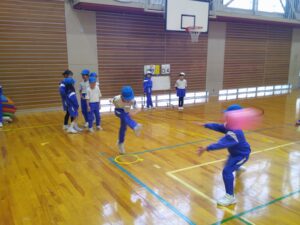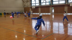 キックベースボール(2年生) 2025年12月17日 2年生 体育科の学習で5回目のキックベースボールを行いました。回を重ねるごとに、たくさん得点を取るために蹴り方や蹴る方向を工夫したり、点数を与えないために守備のポジションを考えたりする姿が見られるようになりました。どのチームも話し合いをしながら、様々な工夫を重ねて取り組んでいます。