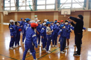 はげしく!○○しよう!(5年生) 2025年12月17日 5年生 今日は体育科の学習で、表現運動を行いました。 テーマは「はげしく○○する」で、テーマに沿って身の回りにある色々な物の動きをダイナミックに表現しました。 ポップコーンがはじける様子や、洗濯物が風で飛んでいきそうな様子など、非常に大きな動きもあれば、フライパンで揺すられているポップコーンやかたく絞られている衣類などの、細かいながらニュアンスの表現が難しい動きもあり、子供たちはうまく表現できるよう、真剣に取り組んでいました。