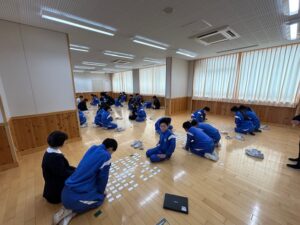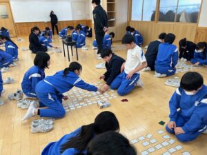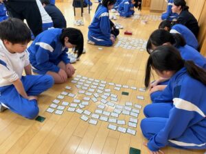 百人一首を行いました。実行委員を立ち上げて、子供たちがルールを考え、進行しました。