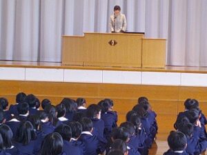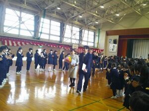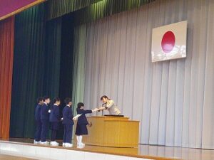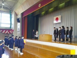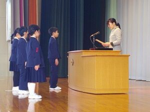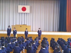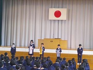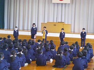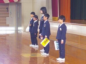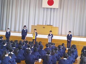 令和7年度 修了式 2026年3月24日 1年生, 2年生, 3年生, 4年生, 5年生 令和7年度の修了式が行われました。 まず、2・4・5年生の代表児童がこの3学期を振り返り、がんばって取り組んだことを発表しました。 次に各学年の代表児童が、校長先生から修了証を受け取りました。
