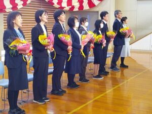 令和7年度 退任式・離任式が行われました 2026年3月24日 1年生, 2年生, 3年生, 4年生, 5年生 退任式・離任式が行われました。 これまでお世話になった9名の先生方にみんなで感謝の気持ちを伝え,最後のお別れを惜しみました。