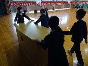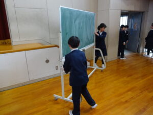 朝は、早く来た人たちを中心として、修了式の会場準備を行いました。