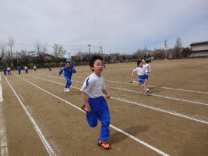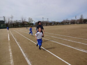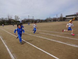 風になって駆け抜けろ!(2年生) 2026年4月13日 5年生 今日は天気がよかったので、グラウンドに出て50m走の練習を行いました。 速く走るポイントとして、①前を見る、②腕を振る、③地面から力をもらう、を合言葉に、一人一人が一生懸命取り組みました。 ゴールラインの先を目指して、力いっぱい駆け抜けた子供たちは、満足感のある表情をしていました。 休み時間には、担任の先生ともレース! 落ち着いて、並んで移動できました!