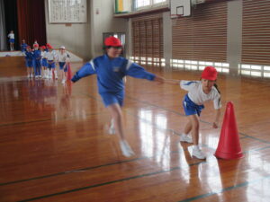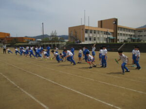 体育の学習(4年生) 2026年4月23日 4年生 4年生は体育の学習で短距離走やリレーをしています。 スタートの構え方や、速く走るこつを聞いて真剣に取り組んでいます。 また、リレーではバトンパスの練習をしたり、バトンゾーンをどのように使うとよいか考えたりしながら学習に取り組んでいます。 色団も決まり、運動会モードになってきました。
