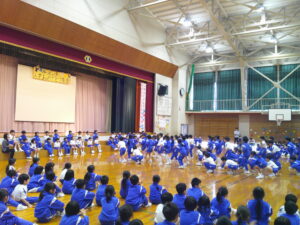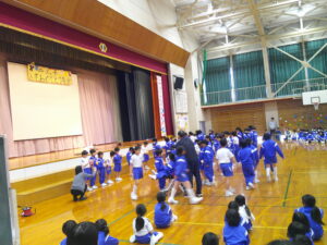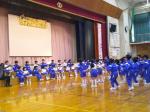 入学おめでとう集会 2026年4月24日 1年生, 2年生, 3年生, 4年生, 5年生, 6年生 「入学おめでとう集会」を行いました。「1年生とみんなが、学校を楽しめる集会にしよう。」というテーマのもと、6年生が中心となって企画・運営を行いました。各学年の出し物では、1年生に楽しんでもらおうと、どの学年の子供たちも工夫を凝らし、精一杯取り組む姿が見られました。その思いを受けて、最後には新1年生が元気いっぱいに校歌を披露してくれました。1年生だけでなく、全校のみんなが「学校に来るのが楽しみだな」と感じられる、笑顔あふれる温かな集会となりました。